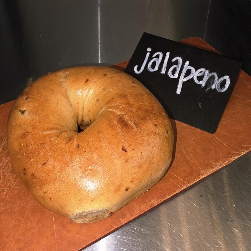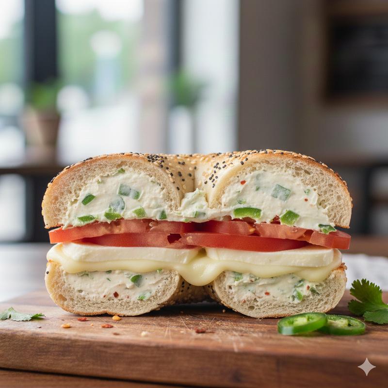Everything bagel, mozzarella cheese, tomato, and jalapeno cream cheese